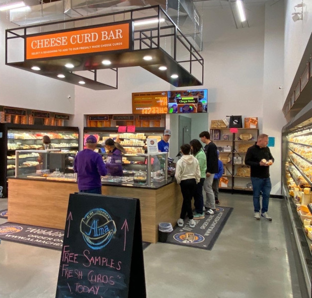 This popular storefront opened its doors in September 2022. That’s where you can find the cheese curd bar — a special section where you can select one of three sizes of fresh, squeaky cheese curds and choose your own seasoning like bacon ranch, pizza or sweet jalapeno for a tasty, custom snack on the go.