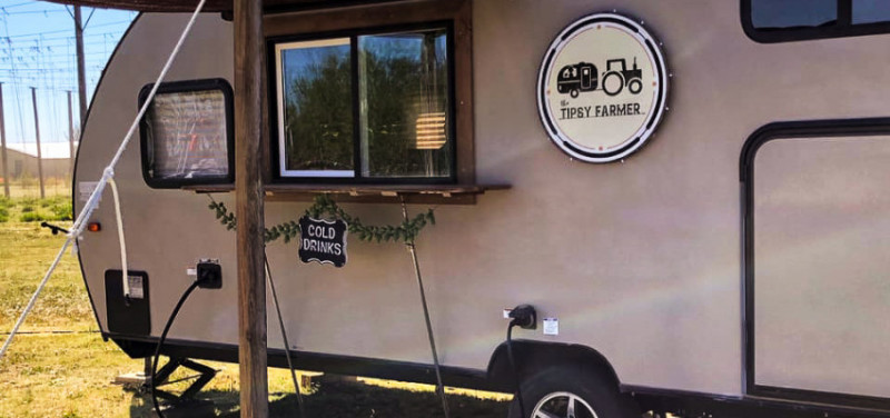Lahey’s dad, Steve, helped her convert the camper into a mobile bar they call The Tipsy Farmer, which they use to travel to events and serve beer made with their hops, plus margaritas, mules and mixed cocktails.
