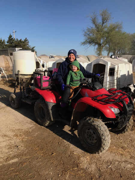 One of her favorite helpers at the dairy is her grandson Dawson. Her daughter and son-in-law, who live nearby, have two children. Kevin works at the dairy and, while the newborn stays at home with Ashley, Dawson likes to come along and help Kristina.